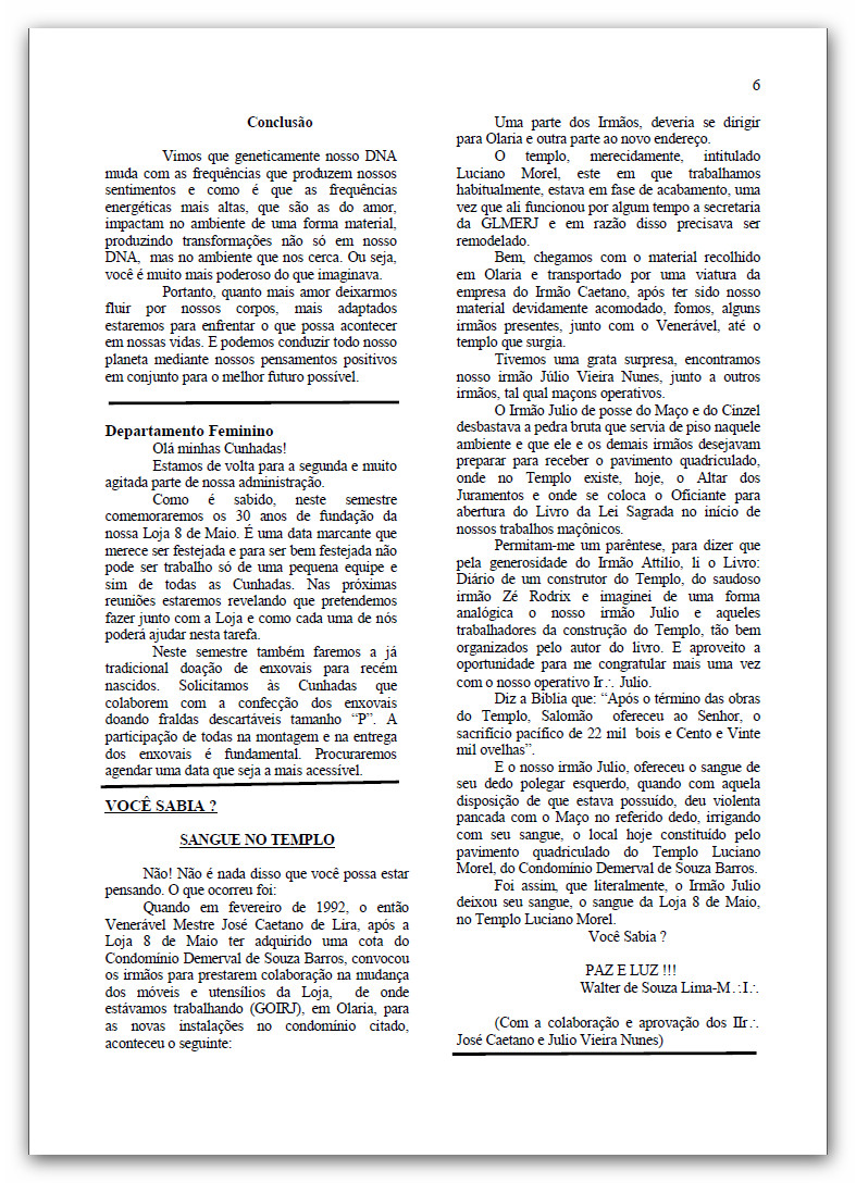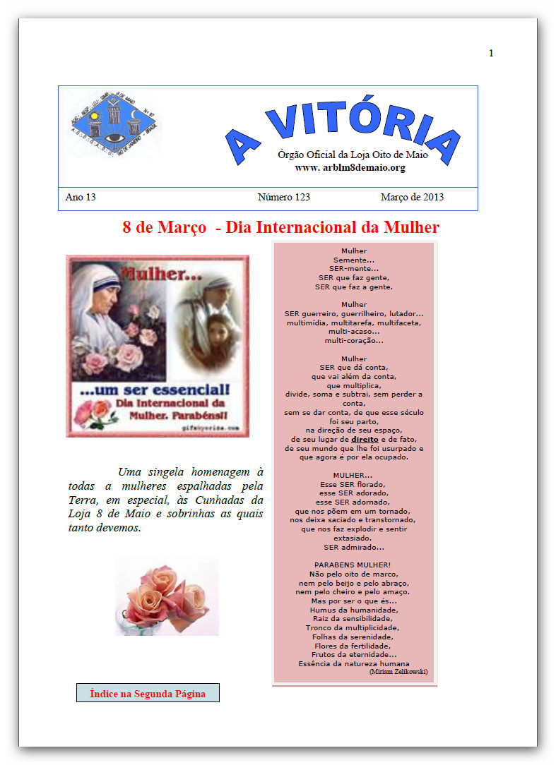 N 123 - Loja Maçonica 8 de Maio nº 87