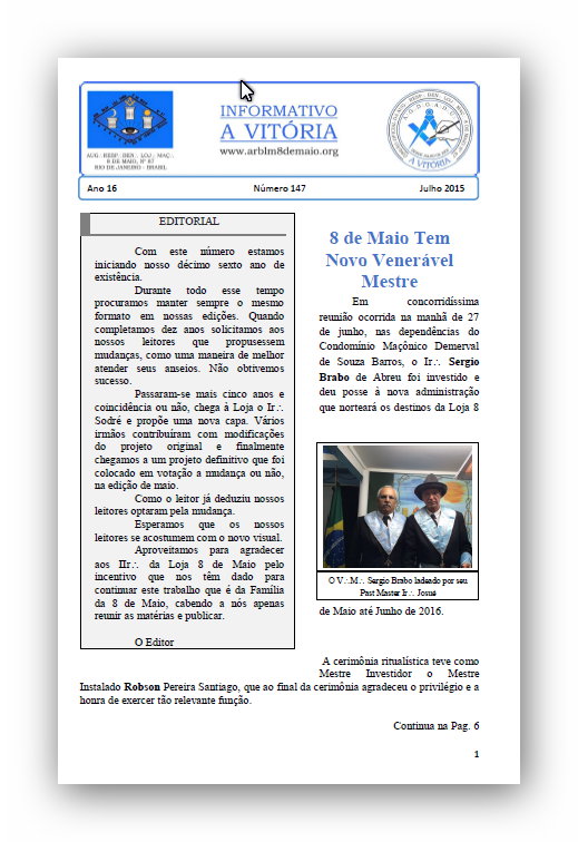 N 147 - Loja Maçonica 8 de Maio nº 87