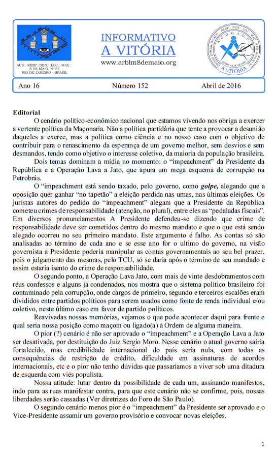 N 152 - Loja Maçonica 8 de Maio nº 87
