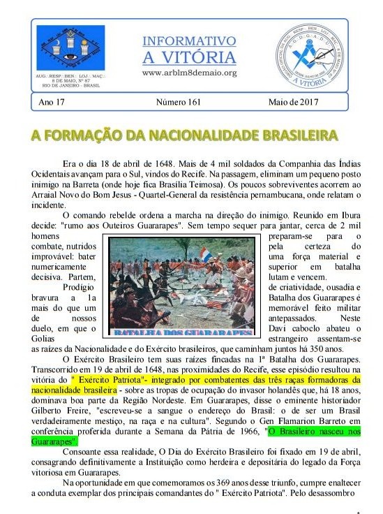 N 161 - Loja Maçonica 8 de Maio nº 87
