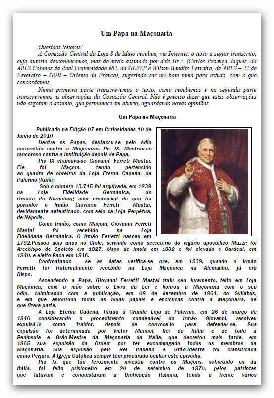 N 7 - Loja Maçonica 8 de Maio nº 87