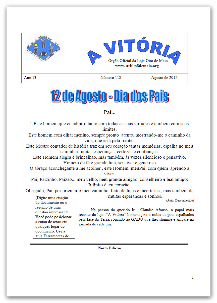 N 118 - Loja Maçonica 8 de Maio nº 87