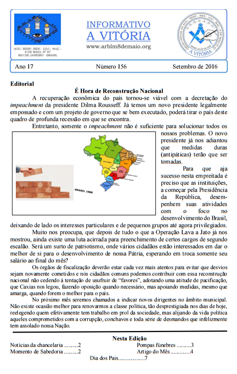 N 156 - Loja Maçonica 8 de Maio nº 87