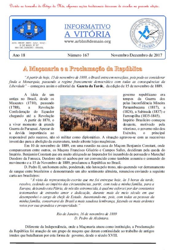 N 167 - Loja Maçonica 8 de Maio nº 87